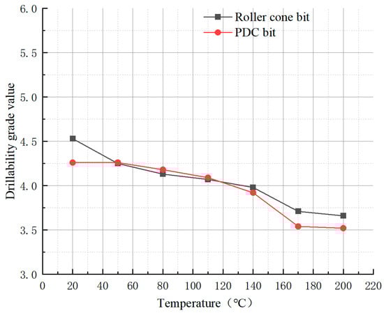 Figure 3 depicts the analysis results of rock drillability levels at different temperatures. As indicated by the graph, the drillability level of rocks decreases with increasing temperature. This is because as the temperature rises, the cohesive strength of crystalline units within the rock decreases, causing fractures and dislocations between mineral grains. This process promotes the development of new pores and cracks within the rock core [17], thereby establishing a critical temperature at which micro-cracking in the rock occurs [18]. From the graph, it can be observed that this critical temperature is approximately 140 °C.