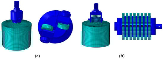 Micro-drilling rock-breaking model: (a) PDC Micro-drillability Rock Breaking Model; (b) Toothed Wheel Micro-drillability Rock Breaking Model.