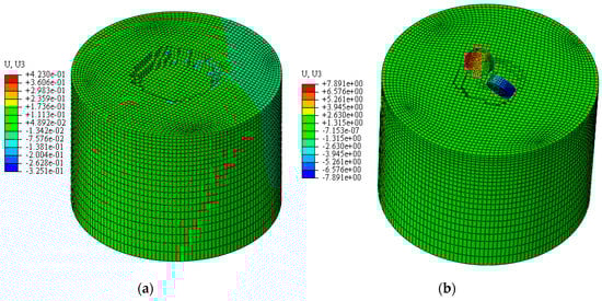 When the plastic stress of the rock exceeds its critical value, damage begins to occur. The impact of the already failed elements on the rock-breaking process is neglected. The plastic strain criterion for the rock is represented by Equation (8).