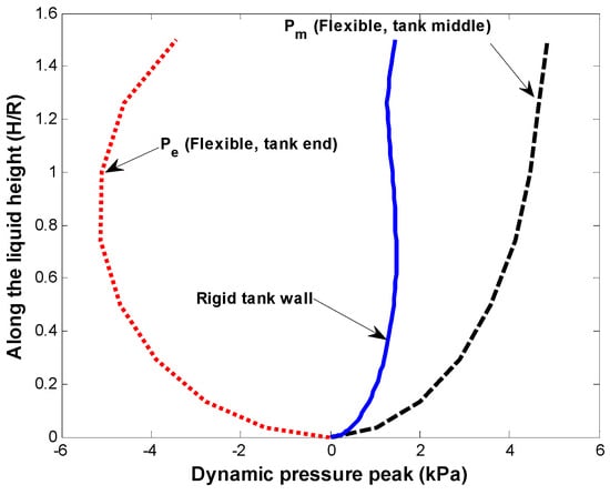 - Considering the flexible tank wall, the liquid dynamic pressure peak appears in the middle of the storage tank and at the connection between the cylinder and the head.