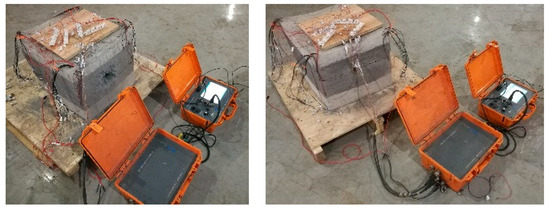 After both blasting models completed the blasting tests, the NPEI-DHZI network parallel electrical resistivity instrumentation was used to conduct data measurements on the models after blasting, as shown in Figure 10. The collected data were exported using software and decrypted using the corresponding decryption software.