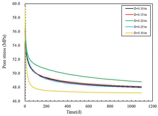 Time-varying curves of pore pressure at different natural fracture density monitoring points. Where D is the natural fracture density.