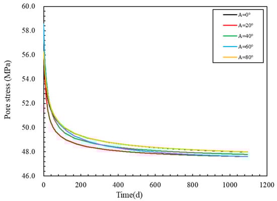 Time-varying curves of pore pressure at monitoring points with different natural fracture angles. Where A is the natural fracture angle.