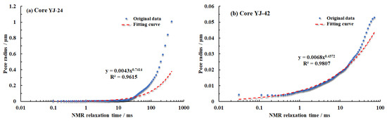 3.1. Core Pore Distribution and NMR Relaxation Time Conversion
