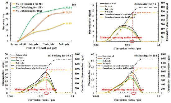 - Longer soaking times were associated with increased CO2 diffusion and enhanced recovery from mesopores. However, excessive soaking time (more than 10 h) can result in core pore pressure reduction and a subsequent decrease in overall recovery. Thus, determining the optimal soaking time is essential to achieving maximum CO2 huff-n-puff recovery.