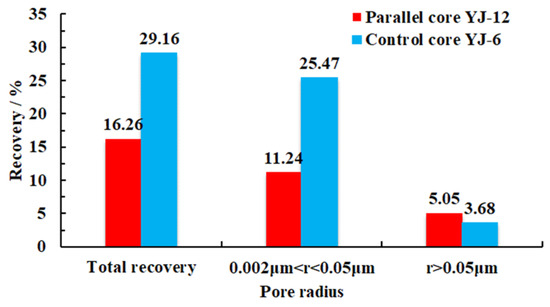 - Based on NMR T2 spectra, calculate the ratio of signal changes in each pore to the total signal value in order to obtain the recovery of each pore.
