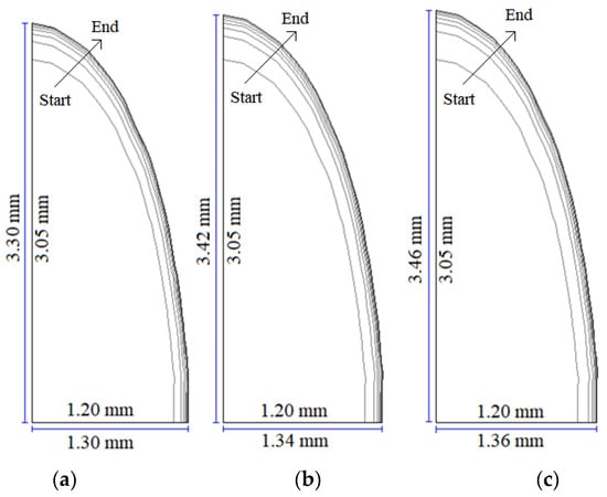 From Figure 11, it can be observed, again, that the highest rates of the expansion ratio () occur at the initial instants, decreasing over time.