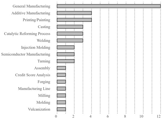 The complex and diverse field of general manufacturing has been thoroughly analyzed by scholars such as Viharos and Jakab [29], Teinemaa et al. [30], Abbasi [31], and Nalbach et al. [32]. Their research provides valuable insights into a wide range of manufacturing techniques and technologies, offering significant contributions that impact various industrial sectors. The semiconductor manufacturing industry, which is critical to the electronics sector, has also seen groundbreaking advancements through the work of Schrunner et al. [33].