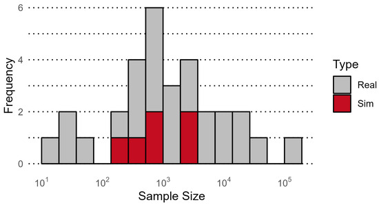 Distribution of sample size in a logarithmic scale.