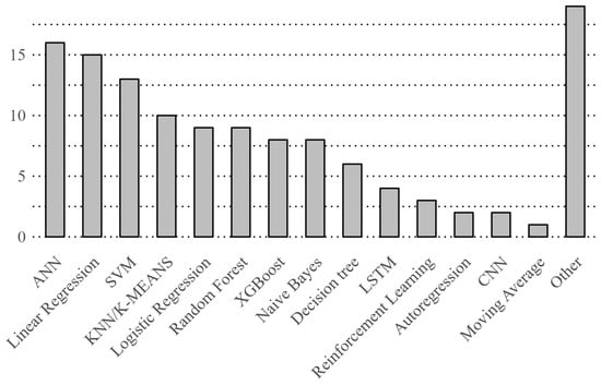In the field of SPC, researchers from diverse backgrounds have applied ML principles to address both classification and regression challenges, employing a variety of predictive algorithms (Figure 9). For instance, some researchers, such as Afrasiab and Khodaygan [37], have utilized the Monte Carlo method specifically for regression tasks, contributing significantly to predictive modeling and forecasting within SPC. Others, such as Li et al. [38], have tackled regression problems using ensemble learning techniques, including methods such as Linear Regression, Support Vector Machines (SVM), Random Forests, and Gradient Boosting, to derive comprehensive insights. Additionally, some studies, exemplified by Abbasi [31], focus exclusively on regression by employing Artificial Neural Networks (ANNs), a versatile tool in ML. In contrast, Pheng et al. [46] leveraged LSTM networks, which are particularly well-suited for forecasting tasks. Moreover, Li et al. [47] combined Convolutional Neural Networks (CNNs) with SVMs to address regression problems, aiming to enhance predictive accuracy by integrating the strengths of these algorithms. Further diversifying the approaches, researchers such as Jeereddy et al. [41] employed a range of algorithms, including XGBoost and LSTM, to tackle regression challenges across different application domains. These efforts contribute to the broader advancement of predictive analytics and the refinement of forecasting models. Finally, Li et al. [47] continued to explore regression methodologies, seeking to deepen the understanding of predictive capabilities within their specific fields of study, thereby advancing the field of SPC.