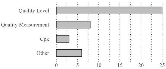 Within the field of quality control and process monitoring, researchers have examined a broad spectrum of dependent variables to improve our understanding of industrial processes and product quality. This review compiles and analyzes key findings from studies published between 2008 and 2023, offering a detailed overview of the progress and emerging trends in this area (Figure 10). Several studies have focused on the geometric aspects of industrial processes. Afrasiab and Khodaygan [37] examined the importance of six geometrical control points, while Ke and Huang [25] explored the geometric width of products. These investigations shed light on how geometric factors contribute to product quality and process control. Quality assessment and control are integral to manufacturing and production processes. Researchers such as Li et al. [38] and Kahya et al. [43] have examined product quality through parameters such as yield strength, tensile strength, elongation, and impact work, providing valuable insights into the factors influencing steel quality. Additionally, the studies by Schäfer et al. [24] and Mahadevan and Theocharous [48] delved into negative pressure and inventory levels as indicators of product quality and process stability. Process monitoring and control are crucial in maintaining efficiency and minimizing defects. Various studies have explored control chart patterns [23,39,45,49], Hotellings T⌃2 [42], and abnormal wave profiles [50] to detect deviations and anomalies. These investigations provide insights into the detection and mitigation of process variations. Furthermore, researchers have undertaken significant effort of predictive process modeling. Mishra and Rane [14] investigated the probability of achieving a global benchmark quality level, while Abbasi [31] delved into the prediction of PCI for distributions. Similarly, the study by Kabasakal et al. [51] focused on binary predictions for fault detection, highlighting the importance of reliable modelling structures in quality management. Multiclass and multilabel classification have also been explored in quality control and process monitoring in their study. In addition, Demircioglu Diren et al. [42] investigated different types of faults and critical events, respectively, while Pheng et al. [46] explored multiclass classification models to enhance process monitoring.