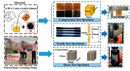 - Yu, Z.S. Experimental Study on Mechanical Properties of Non-Foaming Polymer Grouting Materials. Master’s Dissertation, Zhengzhou University, Zhengzhou, China, 2020. [Google Scholar]