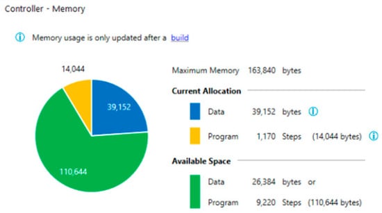 Using the MPC formulation described in Section 3, the values of the input constraints listed in Table 4 with a unitary control horizon, the transfer functions identified in Section 4.1, and the implementation methodology described in Mendes et al. (2022) [], the MTSK-MPC was successfully embedded into a PLC to control a PSA unit. Figure 6 illustrates the PLC memory used for the program and the data required by this implementation.