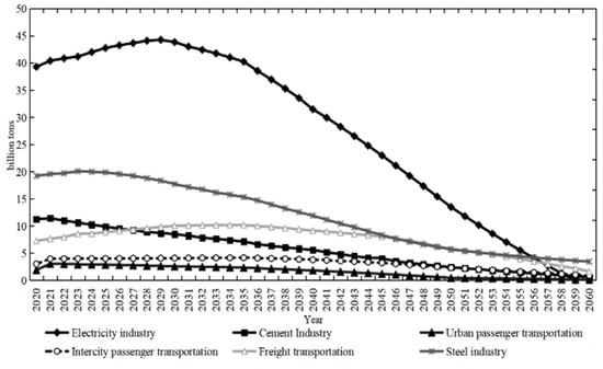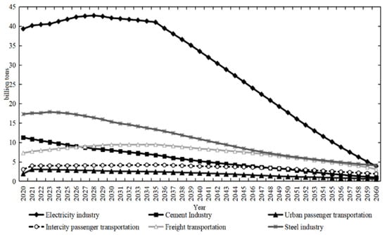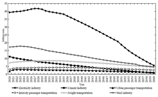 2 emissions from 2020 to 2060 were mainly concentrated in the electricity, steel, cement, and transportation industries. The CO