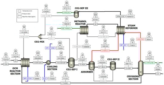 Simulated flowsheet of the integrated OCM process, in which the adsorption unit has been retrofitted.