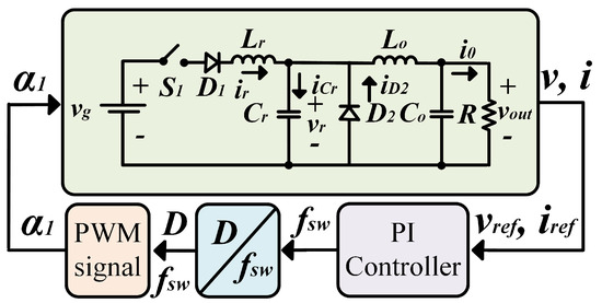 With the purpose to better evaluate the impact of the contribution, in this paper, its usefulness is illustrated by considering the widely accepted and most simple control scheme given by the proportional–integral () controller. The rationale behind this choice is that besides its simple structure, a scheme is considered as a reference for any alternative control scheme reported in the literature. Then, it is the authors belief that an improved operation of this scheme signifies a valuable advance in the field. Thus, a complete and exhaustive study of the converter operation under load variations was performed to show that the modified implementation of the PI controller drastically improved the performance achieved by the QR converter.