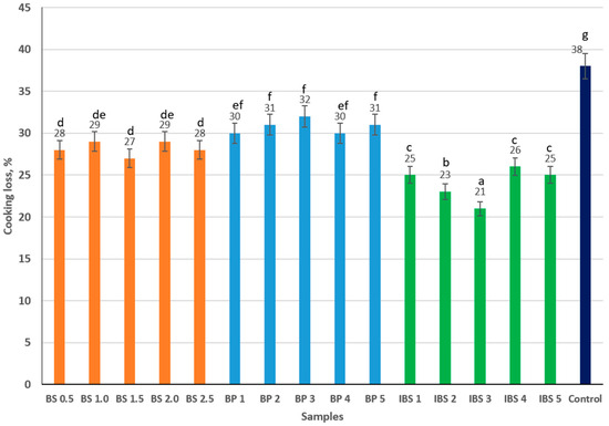 The weight loss of the meat during heat treatment was calculated according to Formula (4):