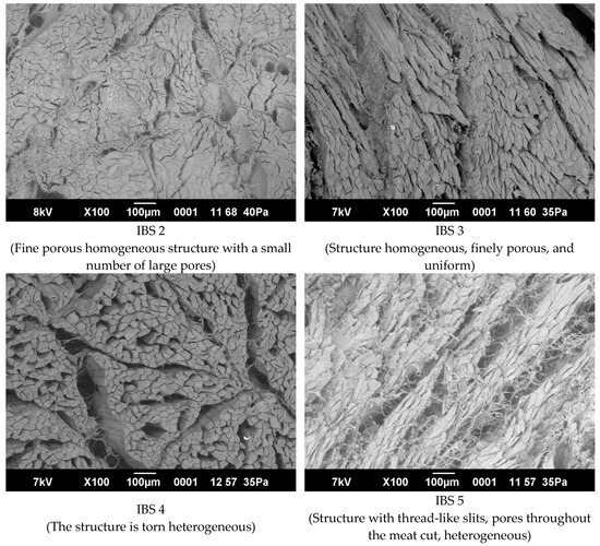 Observations of the microstructure of meat–bone paste were made using a low vacuum scanning electron microscope JSM-6390LV JEOL (Tokyo, Japan). The accelerating voltage applied to the electron beam was 15 KV, at a magnification of X100 [48].