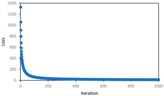 Training progression over 1000 iterations of the deep neural network model for subproblem three, literature DPFSP instance 85.