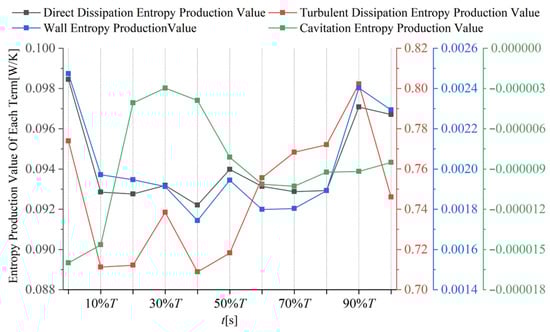 To quantitatively analyze the different types of entropy production value, the entropy production value of each item in a cycle is shown in Figure 8.