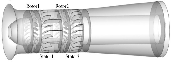 Here, Rotor1 and Rotor2 represent the first and second stages of moving blades, while Stator1 and Stator2 represent the first and second stages of stator blades. The specific structural parameters are given in Table 1.