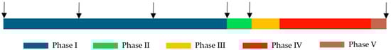 The course of the individual phases of the semi-continuous cycle is shown in Figure 2. Arrows indicate the sampling points. The exact setting of the duration of each phase and the overall cycle depends on the WWTP technology, wastewater quality, and the minimization of output parameters. Sampling was conducted from the activation tank in accordance with the timing of the individual phases of the treatment process.