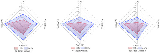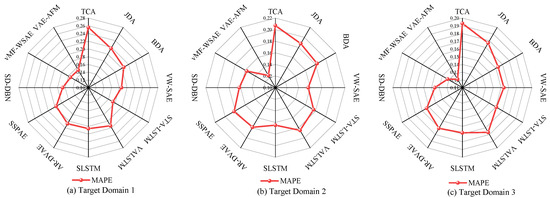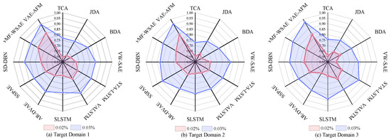 In this section, we compare the proposed VAE-AFM soft sensor method with other soft sensor methods. These include the transfer component analysis (TCA) domain adaptation algorithm proposed by Pan et al. [38], the joint distribution adaptation (JDA) domain adaptation algorithm proposed by Long et al. [39,40], and the balanced distribution adaptation (BDA) algorithm proposed by Wang et al. [41]. Additionally, we compare it with the variable-wise weighted stacked autoencoder (VW-SAE) proposed in [23], the spatiotemporal attention-based LSTM network (STA-LSTM) model proposed in [24], the variable attention-based long short-term memory network (VALSTM) proposed in [25], the supervised LSTM network (SLSTM) model proposed in [26], the attribute-relevant distributed variational autoencoder (AR-DVAE) model proposed in [22], the stacked supervised Poisson autoencoder (SSPAE) model proposed in [21], the supervised dual-branch deep belief network (SD-DBN) model proposed in [20] and the von-Mises Fisher mixture model and weighted stacked autoencoder model (vMF-WSAE) proposed in [19].