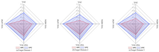 This section includes our experimentation to predict the endpoint temperature in BOF steelmaking. The experimental design follows the same approach as the carbon content prediction experiments detailed in the first section. We use the VAE, VAE-MDA, VAE-JDA, and VAE-AFM models to predict the temperature. Using the proposed VAE-AFM model to predict the endpoint temperature in target domains 1, 2, and 3, the prediction accuracies within a 10°C error range are 85%, 81.81%, and 84.7%, respectively. The root mean square errors (RMSE) are 7.8317, 8.5019, and 8.8545, respectively. The experimental results demonstrate that the proposed VAE-AFM method effectively addresses the issues of high dimensionality, strong nonlinearity, and concept drift in the BOF steelmaking process data.