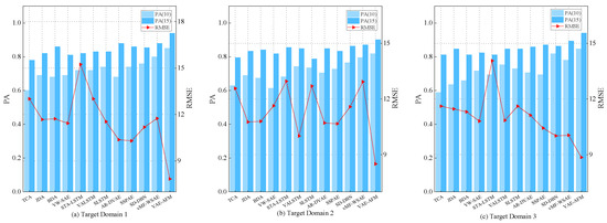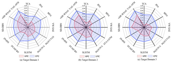 As shown in Table 7 and Table 8, traditional domain adaptation methods such as TCA, JDA, and BDA exhibit relatively poor prediction performance, with higher root mean square error (RMSE) and mean absolute percentage error (MAPE). This is primarily because these domain adaptation methods either only consider the marginal distribution between different domains or consider both the marginal and conditional distributions without accounting for their relative importance. As a result, they cannot adequately reduce the differences between domains. For certain deep learning models, such as the variable-wise weighted stacked autoencoder (VW-SAE) and the spatiotemporal attention-based LSTM network (STA-LSTM), although these models can effectively handle the highly complex BOF steelmaking data, they do not account for the concept drift phenomenon that occurs in the BOF steelmaking process due to differences in raw material batches, process adjustments, and changes in equipment conditions. This leads to changes in data distribution, subsequently affecting model performance.