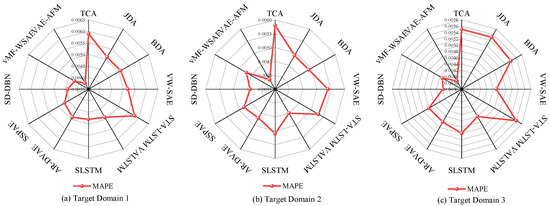 To present the experimental results more vividly and intuitively, this section includes radar charts of the MAPE and PA prediction results for endpoint carbon content and temperature in BOF steelmaking, as well as a bar chart of the MSAE results. These charts are shown in Figure 17, Figure 18, Figure 19, Figure 20, Figure 21 and Figure 22 below:
