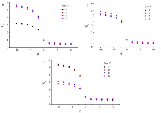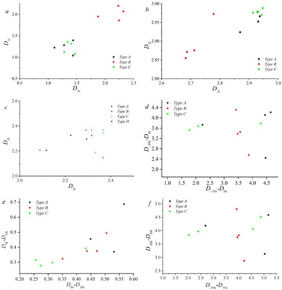 3.4. Correlation Analysis of Fractal Parameters under Different Water Content Conditions
