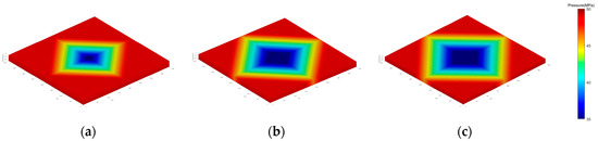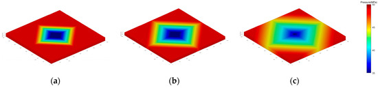 Darcy flow pressure field changes. (a) t = 5a, (b) t = 20a, and (c) t = 30a.