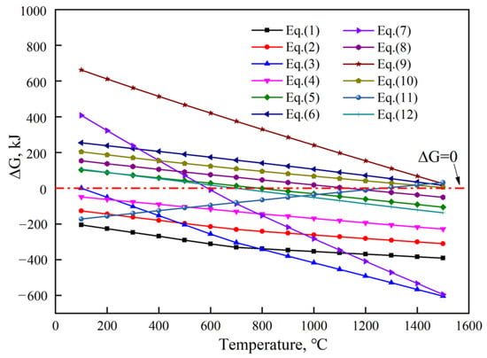 3 gradually decreases, particularly when the temperature reaches 1140 °C, at which point its content is nearly zero. According to Le Chatelier’s principle, the exothermic reactions (Equations (2) and (4)) that produce V