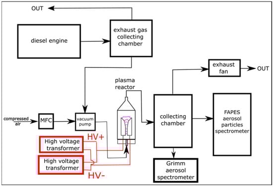 - Pan, W.; Yixi, C.; Jun, W.; Rongyao, Z.; Yazhou, Y. Carbon particles reduction in diesel engine with non-thermal plasma technology. In Proceedings of the 2010 International Conference on Electrical and Control Engineering, Wuhan, China, 25–27 June 2010; pp. 3447–3449. [Google Scholar] [CrossRef]