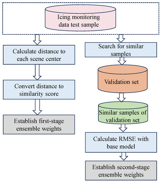 Ice coating prediction process based on two-stage adaptive weighted ensemble learning.