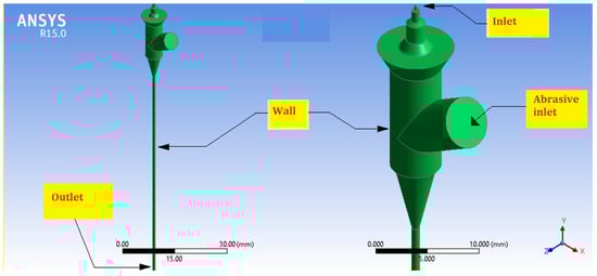 To address the existing research deficiencies and emphasize the innovations of this study, it is important to note that, while previous investigations have primarily focused on isolated aspects of erosion in AWJ machining, they have often overlooked the complex interdependencies between the various factors that affect erosion rates and component durability. Prior studies have typically examined single variables, such as nozzle design or abrasive particle properties, without integrating these elements into a complete analysis that reflects the real-world conditions encountered in AWJ systems. This research fills this gap by conducting a comprehensive three-dimensional CFD analysis that not only simulates the behavior of abrasive particles within the fluid flow, but also quantifies the erosive effects on the critical components of the water jet cutting machine under varying abrasive flow rates and particle sizes. By identifying the critical wear points and establishing a clear relationship between particle size, abrasive flow rate, and erosion, this research offers a more integrated and thorough understanding of the factors influencing erosion in AWJ machining. This approach not only addresses the limitations of previous studies, but also contributes to optimizing the design and operational parameters of water jet cutting machines, thereby enhancing their efficiency and lifespan.