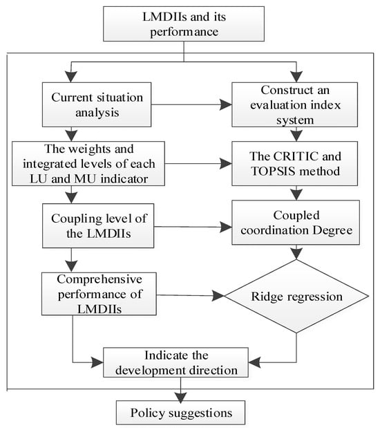 To address the above research gaps and challenges, this study begins by examining the essence of integration and innovation. It constructs an evaluation index system for LMDIIs, calculates weights using the CRITIC method, measures the development level of LU and MU using the TOPSIS method, adopts a coupling coordination model to measure the coupling level of LMDIIs, and finally applies ridge regression to evaluate the performance of LMDIIs. These approaches aim to promote the integration and innovative development of the two industries, marking an innovation in the present study. The innovations of this study will contribute to existing research and offer both theoretical and practical value, as follows: