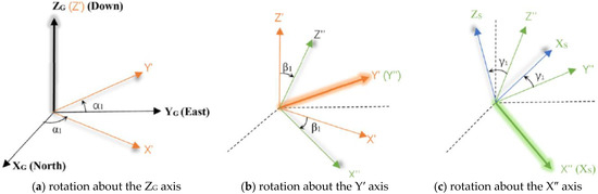Three steps of the transformation between the global coordinate system (GCS) and in situ stress coordinate system (ICS) [58].