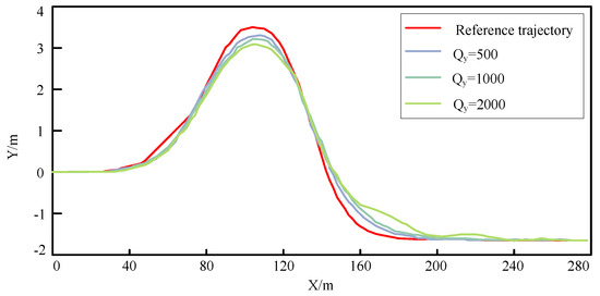 - Li, P.; Yang, Z.; Chen, Y. Rearch on MPC trajectory tracking under variable weight matrix. Mach. Tool Hydraul. 2022, 50, 62–68. [Google Scholar] [CrossRef]