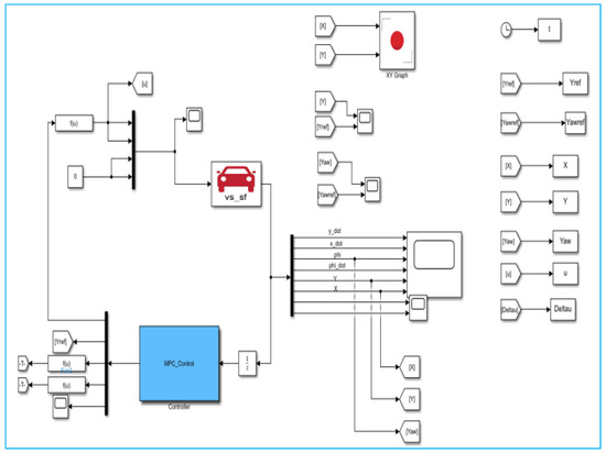 where and , respectively, represent the weighting matrices for the controlled output and input, is the weighting coefficients, is the relaxation factor, the relaxation factor in the stability of MPC prevents the case where there is no feasible solution during execution. The initial component of the equation reflects the system’s demand for controller precision in tracking the reference trajectory, while the subsequent component underscores the stability necessity concerning control input variations [55]. This objective function is capable of accurately constraining the output state error and control increments and incorporating a relaxation factor to ensure that a feasible solution is available at each sampling moment of the execution process.