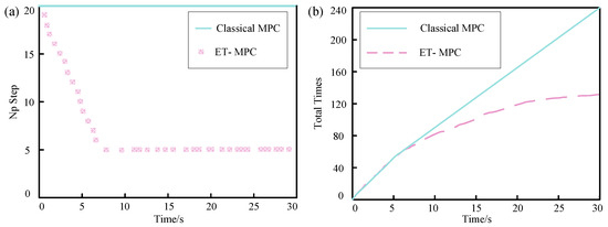 Event-triggered control does not involve computing and updating control inputs at every cycle, but rather at specific moments dictated by the system’s stability criteria. In this paper, the event-triggered control model during the modeling process is introduced to define the conditions for triggering times, allowing the optimization problem to be solved only at these triggering instances. When the control system state error falls below the event-triggered control threshold, the MPC controller ceases computation and maintains the previous output. This approach reduces the number and frequency of system samples, thereby decreasing the controller’s computational load and enhancing the trajectory tracking performance of the controller while ensuring the system operates normally [28].