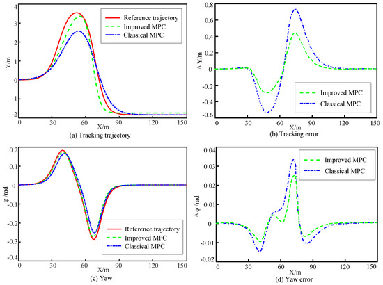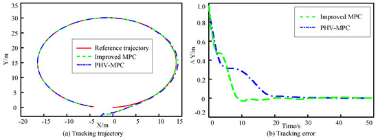 Meanwhile, the improved MPC controller designed is compared with the PHV-MPC algorithm in the paper [60] for verification, and the preset tracking trajectory is a circular trajectory, and the results of the comparison experiments are shown in Figure 20.