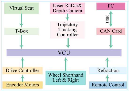 The software module design for the ULV experimental platform is primarily divided into three components: the environment sensing module, the interface display module, and the control module. The design of these software function modules is illustrated in Figure 22. The environment sensing module utilizes laser radar and a depth camera to monitor the surroundings of the vehicle, enabling information acquisition and data processing for the ULV. The display module is responsible for the real-time display and storage of relevant information. Meanwhile, the control module manages vehicle motion to ensure accurate tracking of the predefined trajectory.