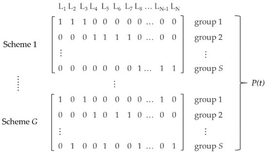 Define the initial population P(0), which consists of G combination schemes. The initial schemes can be randomly generated or set manually (setting a reasonably sound initial population could accelerate the solution process). Figure 4 shows the schematic diagram of the population definition.