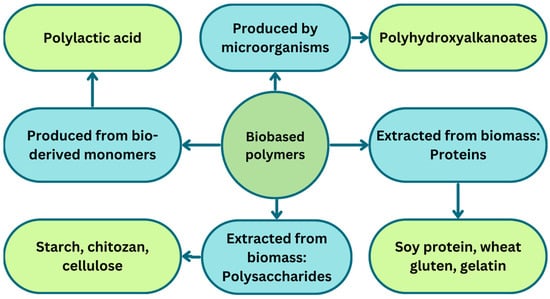 Biobased polymers, derived from primary biomass such as plants or organic materials like starch from corn or potatoes, represent a significant avenue for biopolymer production [15,17]. However, recent research has shifted toward utilizing waste biomass and by-products, termed second-generation biomass, to create biopolymers [25]. This approach holds promise in adding value to resources currently considered waste. The classification of biobased polymers based on the raw material used for production is shown in Figure 1 and the properties, advantages, disadvantages, limitations, and real-time applications of some biobased polymers are shown in Table 3.