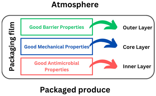 Plastic films such as polyethylene (PE), polypropylene (PP), polyethylene terephthalate (PET), and polystyrene (PS) offer numerous advantages for food packaging due to their versatility, functionality, convenience, and cost-effectiveness. However, the preservation of food properties over an extended period may require more than single-layer films can provide, leading to the adoption of high-barrier multilayer films. These advanced films are manufactured using technologies like thermal lamination and co-extrusion. Despite their excellent properties, non-biodegradable plastic films derived from fossil fuels pose significant environmental challenges. To tackle this issue, there is a growing emphasis on developing new polymers sourced from biological origins, such as biobased multilayer barrier films, to meet the stringent barrier requirements of fresh food packaging while promoting sustainable packaging solutions [32,33].