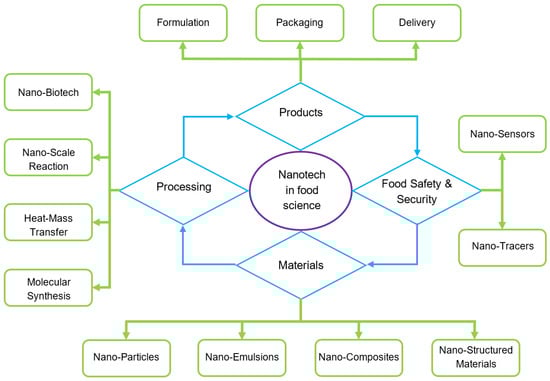 Application of nanotechnology in food science and technology and how this technology is incorporated to improve processes, materials, products, and safety in the food industry. Adaptation by Nile [8].