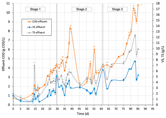 3.4.2. COD, VS, and TS Effluent