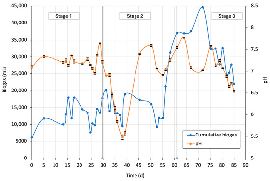 3.4.3. Cumulative Biogas and pH