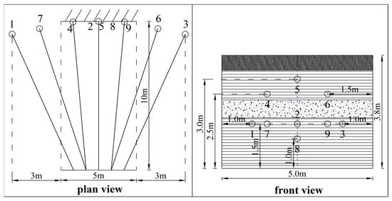 Figure 5. The layout of 9 boreholes for K1 test in the working face. - (2)